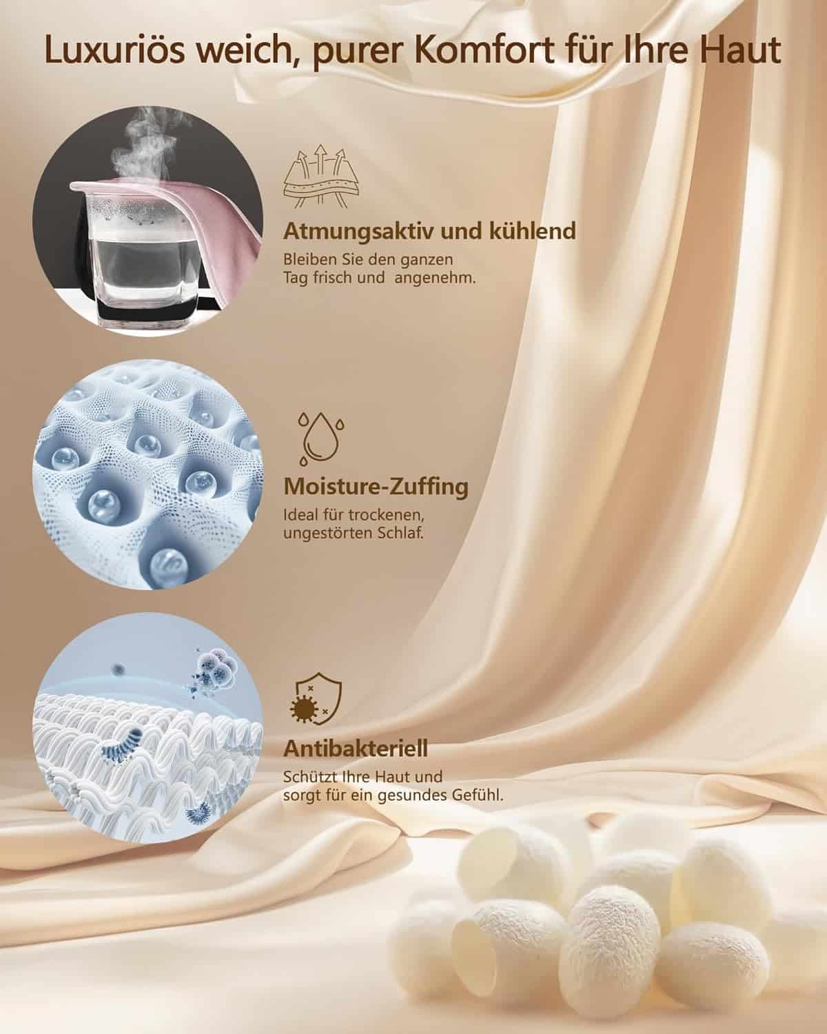 Niisutab ja kaitseb silmaümbrust – Tänu suurepärasele niiskusregulatsioonile imab siid liigse niiskuse ja vabastab selle õrnalt tagasi nahale. See aitab ennetada kuivust, aknet ning hoiab silmaümbruse värske ja hoolitsetuna ka pärast ärkamist.
