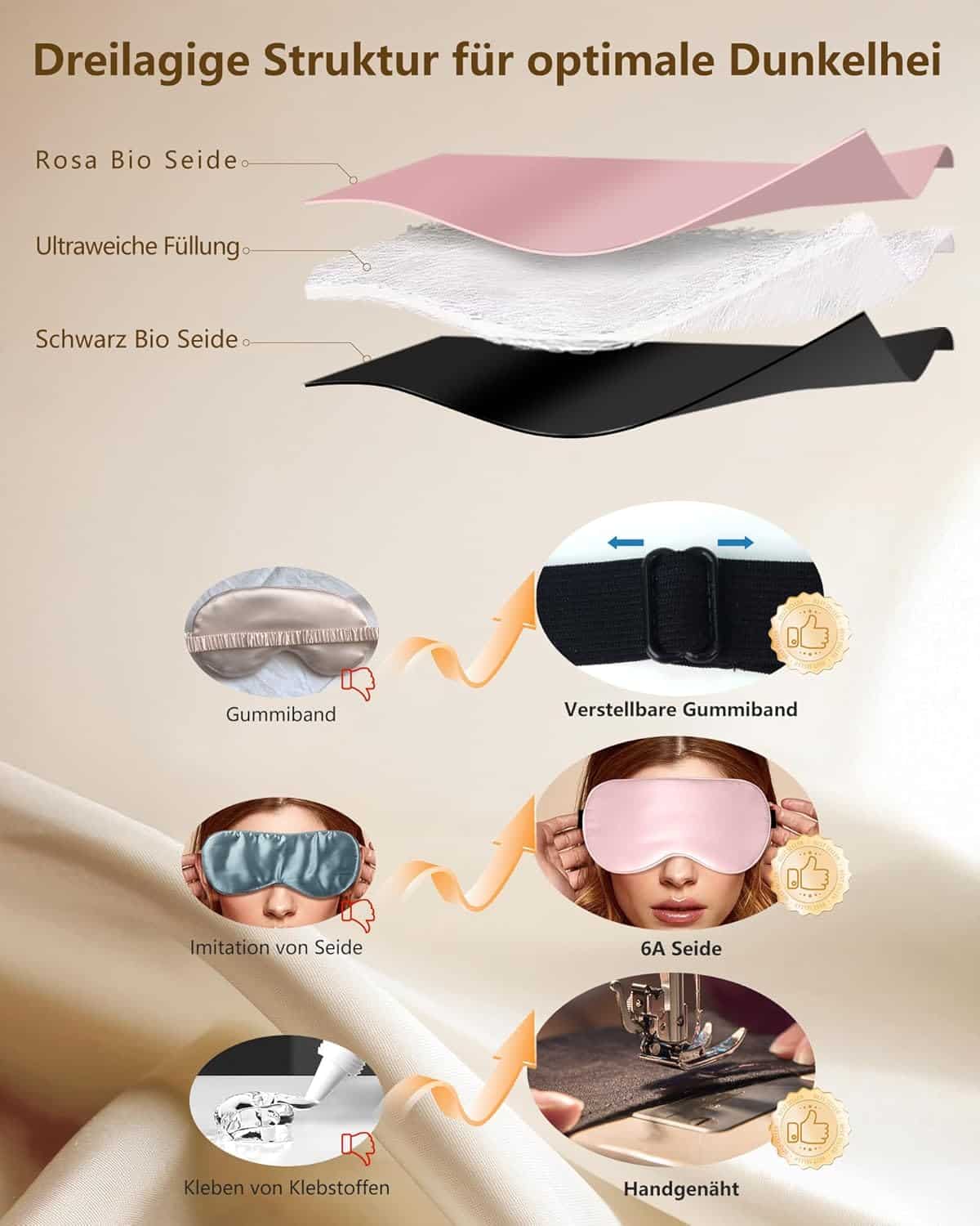 Vähendab hõõrdumist ja kortsude teket une ajal – Tundlik silmaümbrus on kaitstud siidi õrna pinna tõttu, mis vähendab hõõrdumist ja nahavolte. Uuringud näitavad, et näolihaste pinge une ajal võib soodustada kortsude teket – see unemask aitab seda minimeerida ning toetab nooruslikku ja säravat nahka.