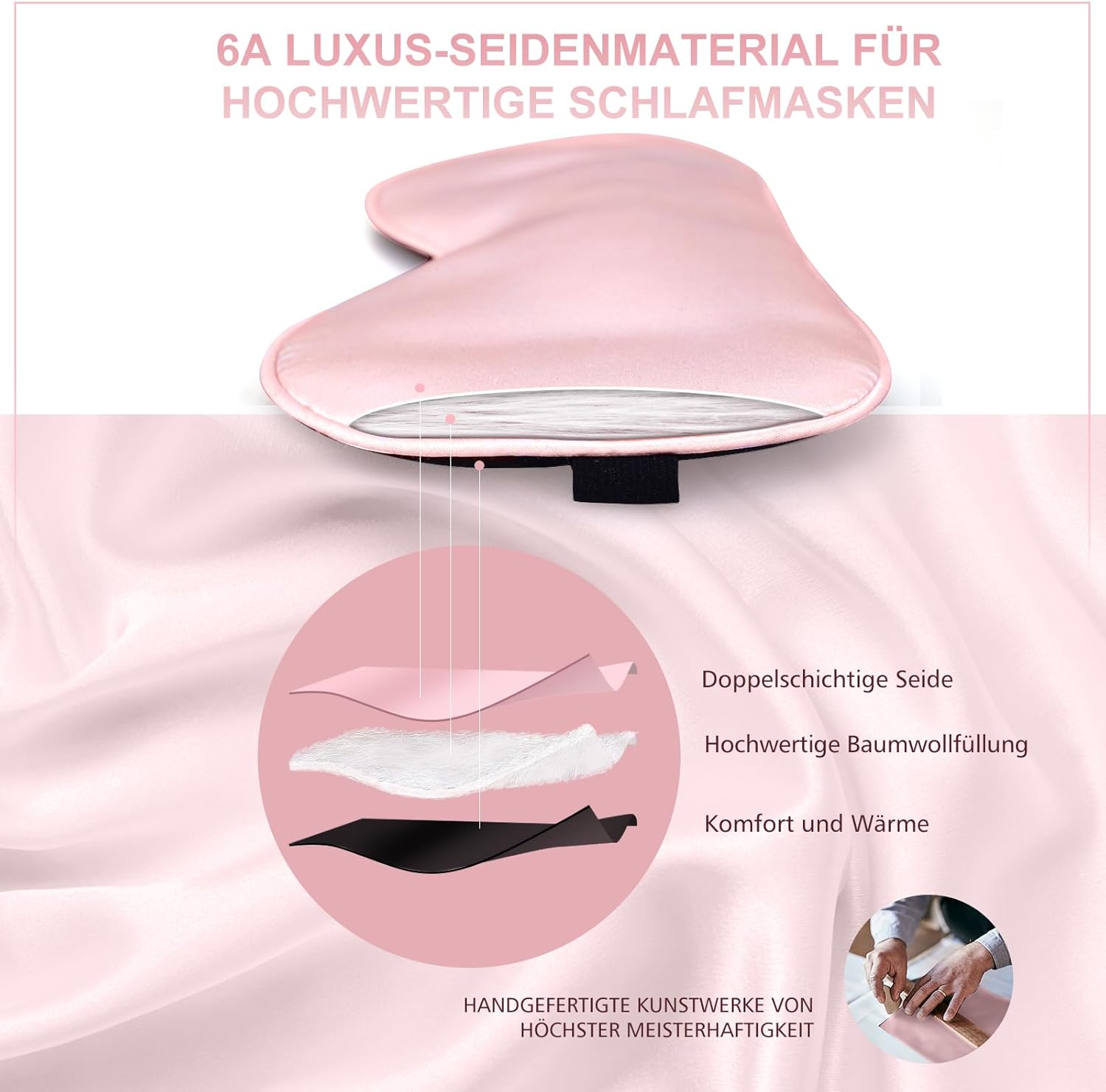 100% looduslik orgaaniline siid nahale – Unemask on valmistatud 100% nahasõbralikust orgaanilisest siidist ja täidetud pehme puuvillaga. Materjal on hingav, jahutav ja õrn, sobides eriti hästi tundlikule nahale. Ideaalne valik neile, kes otsivad luksuslikku ja nahasõbralikku unemaski.